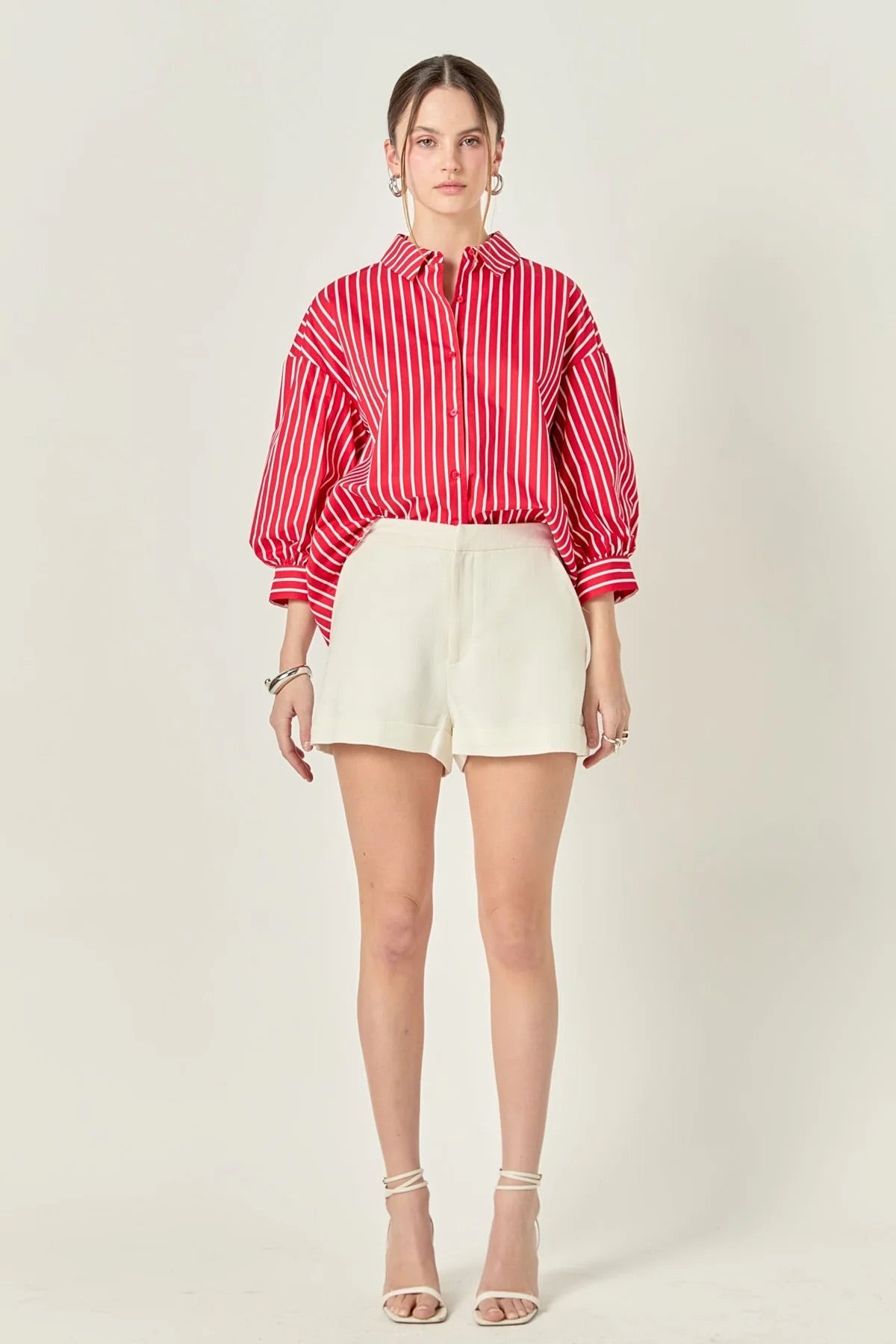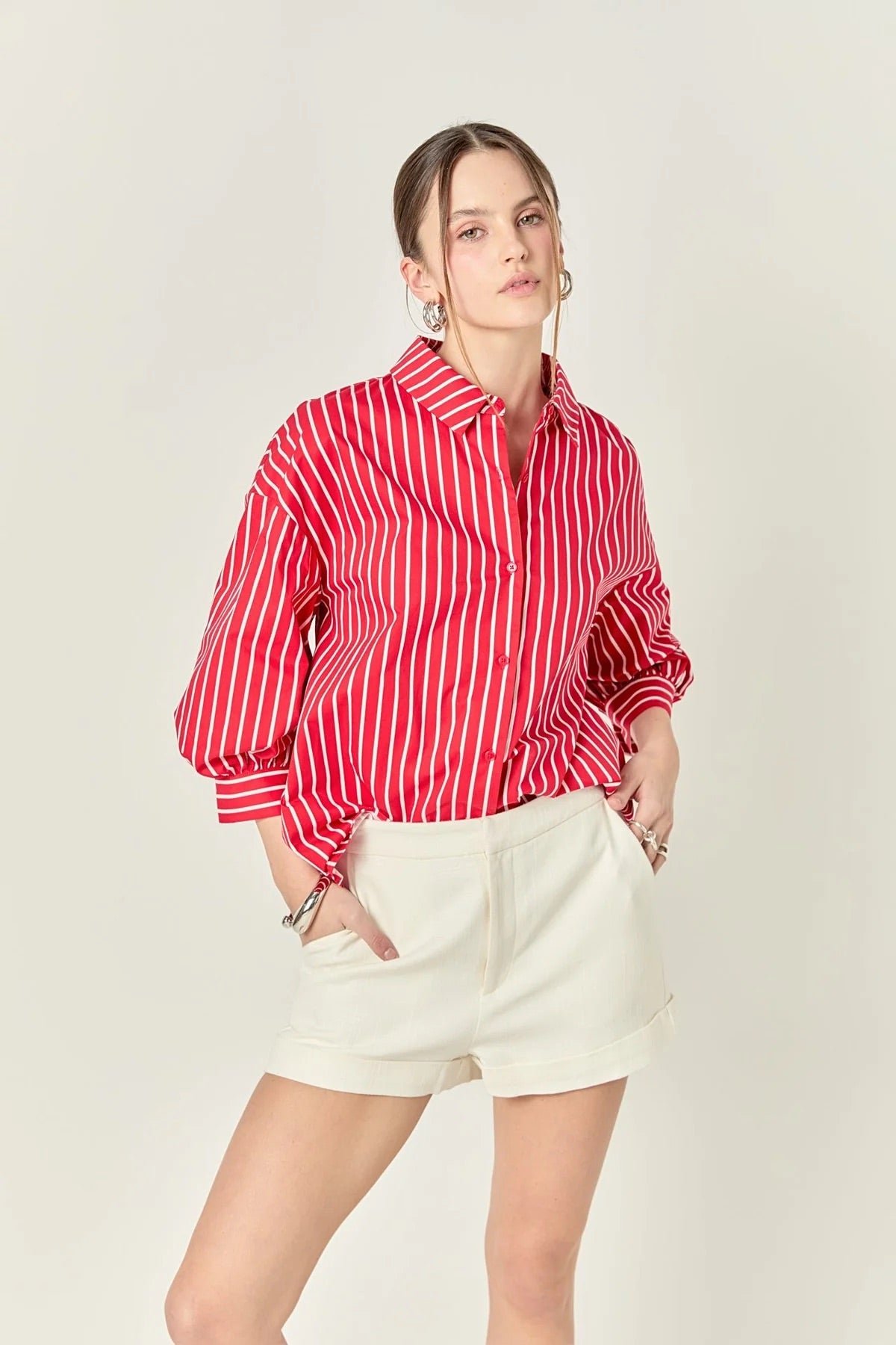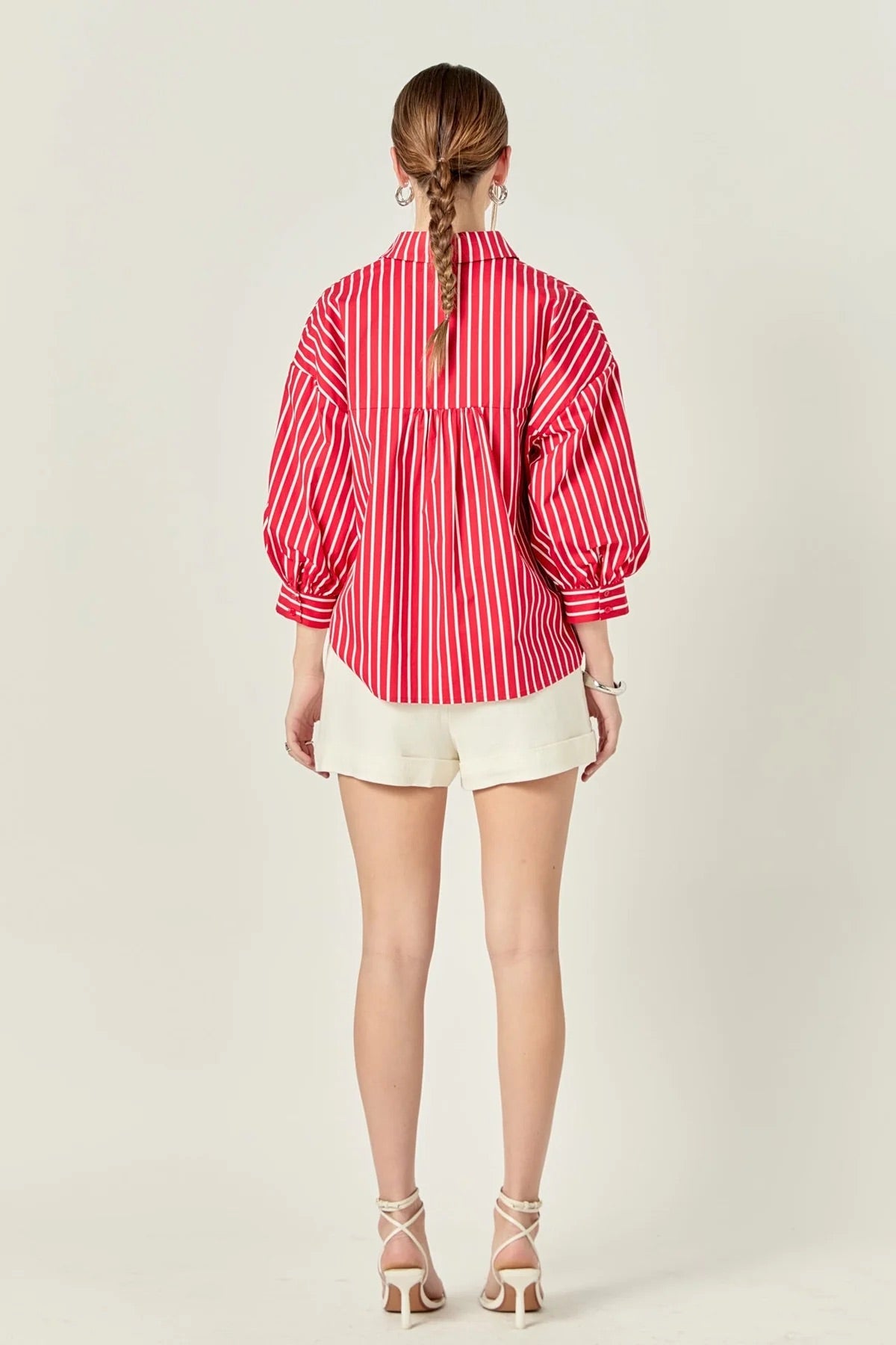 English Factory Red Stripe Balloon Sleeve Shirt