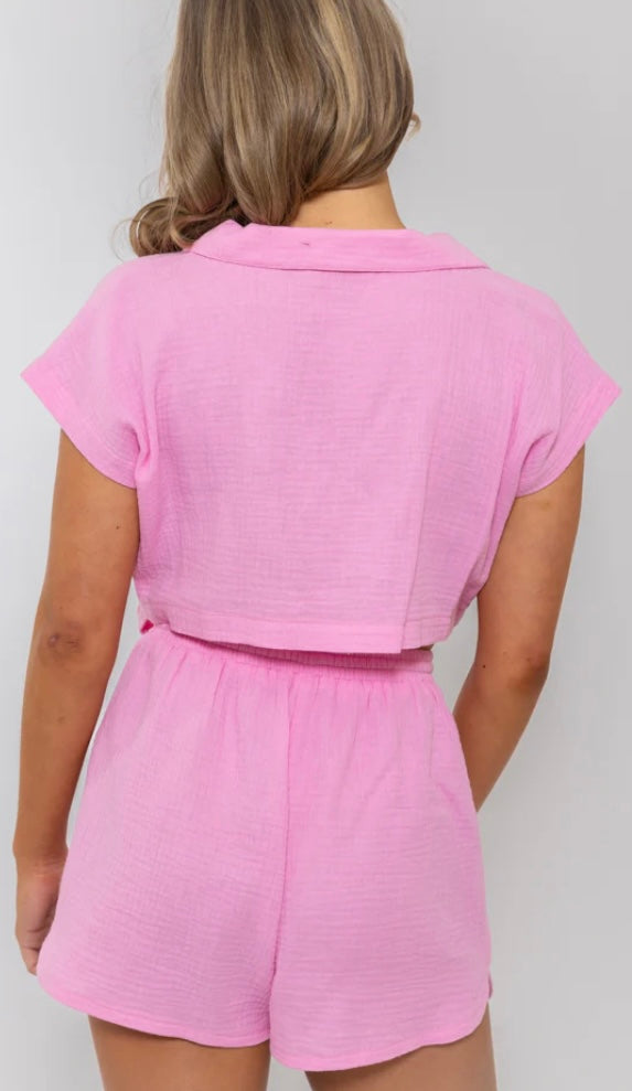 A lightweight romper in the most perfect pink.